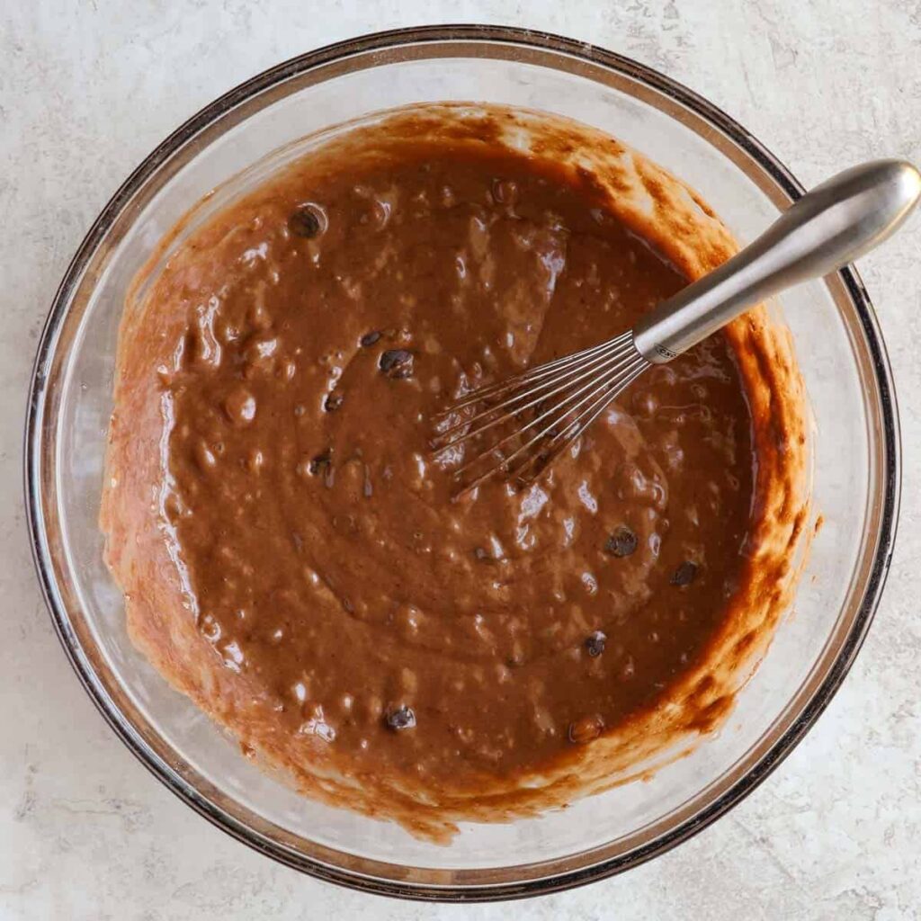 - Fold in the chocolate chips evenly throughout the batter.