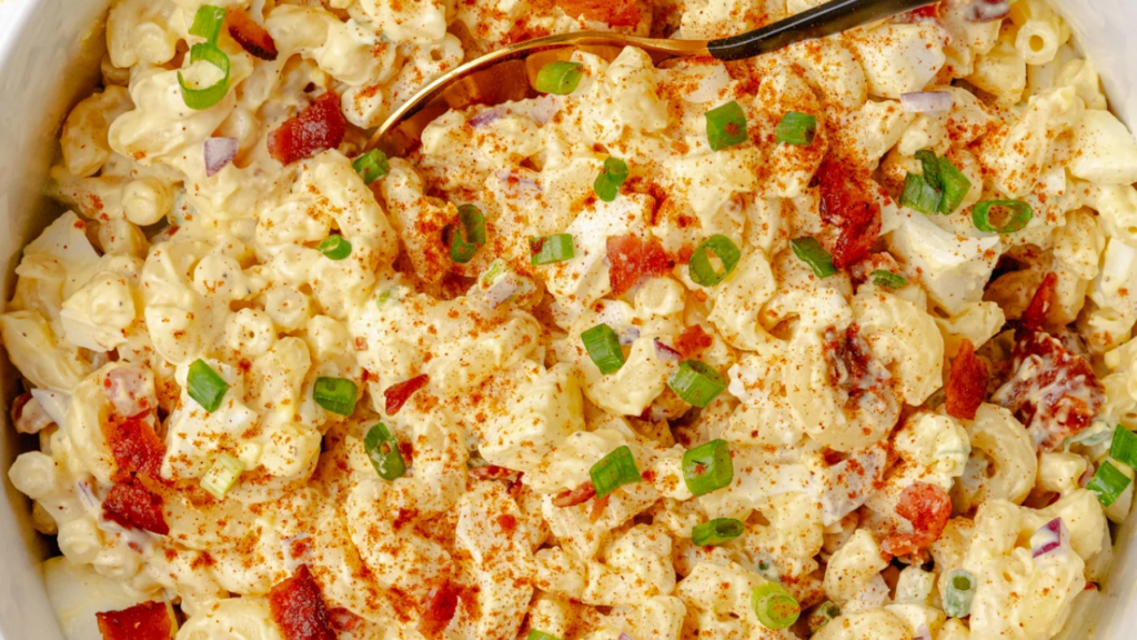 It has all the flavors of deviled eggs but in a pasta salad form, which makes it easy to scoop and serve. This is a comforting, familiar recipe that feels right at home on any table.